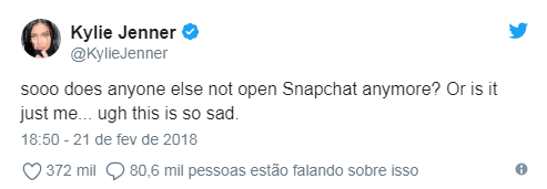 Depois de um simples tweet de Kylie Jenner, influenciadora digital que possui 24,5 milhões de seguidores no Twitter e 104 milhões no Instagram, o app teve uma queda brusca em suas ações, como explica o portal B9: