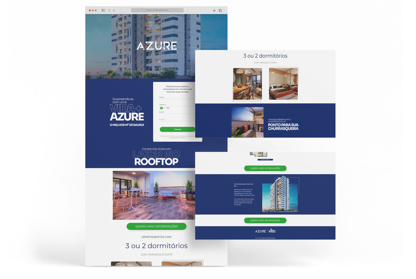 Um empreendimento da Vitta Bauru, foi necessário mudar a comunicação para alcançar o público de vendas. Por isso, reformulamos o visual e estratégia, reforçando os tópicos que tornam o Azure um empreendimento diferencial.